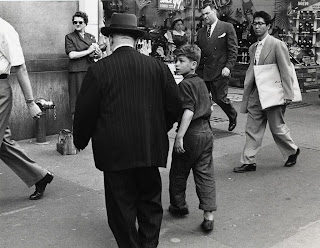 Shoeshine boy getting a customer, New York, 1948