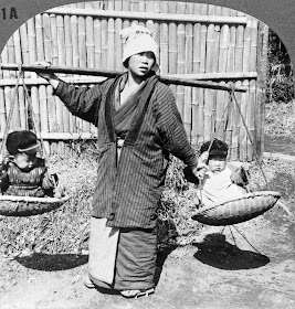 A Japanese woman carrying two babies on yoke, 1928