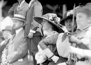 including elaborate hats, sitting on a river bank, 1905-26